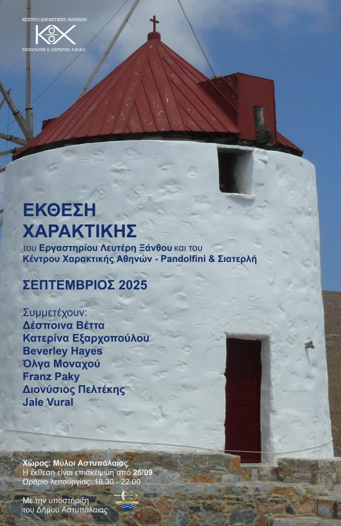 Το ΚΕΝΤΡΟ ΧΑΡΑΚΤΙΚΗΣ ΑΘΗΝΩΝ – PANDOLFINI & ΣΙΑΤΕΡΛΗ Α.Μ.Κ.Ε. σε συνεργασία με το εργαστήριο “Λευτέρης Ξάνθος”, συνδιοργάνωσαν το πρώτο διεθνές Masterclass Χαρακτικής στο νησί της Αστυπάλαιας από τις 15 έως τις 25 Σεπτεμβρίου 2025, τα αποτελέσματα του οποίου παρουσιάζονται σε μια μοναδική έκθεση χαρακτικής στους ιστορικούς Μύλους του νησιού από τις 25 Σεπτεμβρίου.